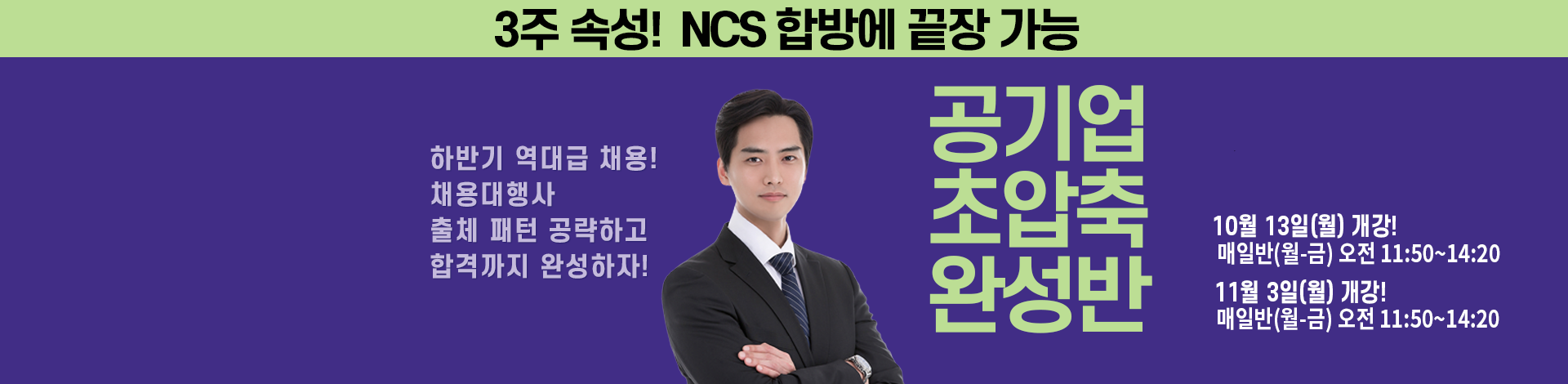 • 11월 ★ 3주 완성 공기업 NCS 준비반 ★ 10:30주5일 (월~금)오전10:30 ~ 13:00