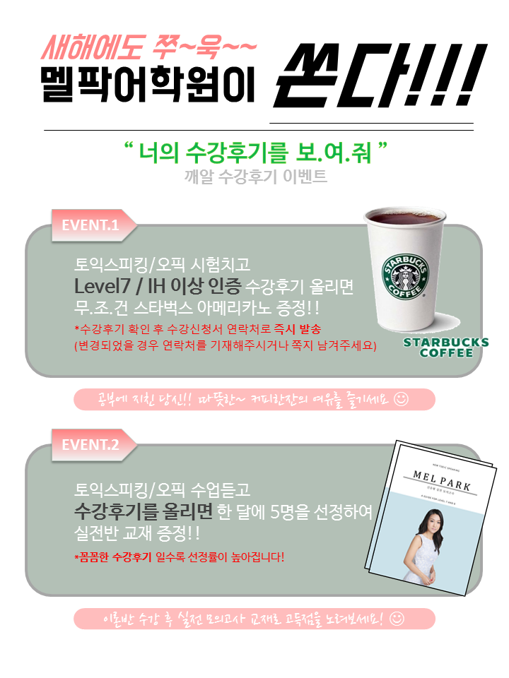 이벤트 | 수강후기 아메리카노 증정 이벤트!!! 페이지 정보 작성자 MELPARK 작성일16-02-11 15:21 조회3,444회 댓글0건 이전글 다음글 검색 목록 본문 댓글목록 등록된 댓글이 없습니다. 이전글 다음글 검색 목록