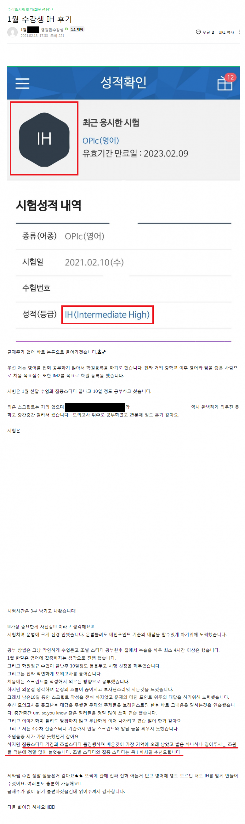 오픽 | (대구오픽 IH후기) 집중스터디, 조별스터디는 필수 중의 필수!! 페이지 정보 작성자 MELPARK 작성일21-03-05 14:42 조회8,034회 댓글0건 이전글 다음글 목록 본문 #멜팍어학원 #제싸오픽 #대구오픽 #대구오픽학원 이전글 다음글 목록