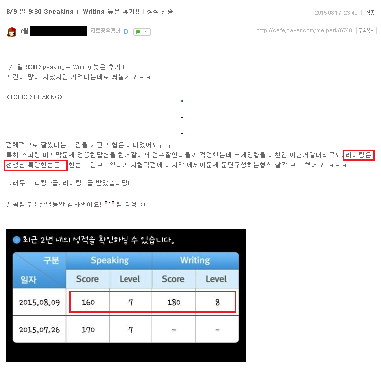 토스 | (대구토스 7급후기) 라이팅은 선생님 특강 한번듣고 8급!! 페이지 정보 작성자 MELPARK 작성일15-09-18 09:10 조회4,349회 댓글0건 이전글 다음글 목록 본문 (클릭 하시면 크게 보실 수 있습니다.) 수강생 후기 입니다. 더 많은 후기는 우측 카페 링크 가입 후 보실 수 있습니다. 이전글 다음글 목록
