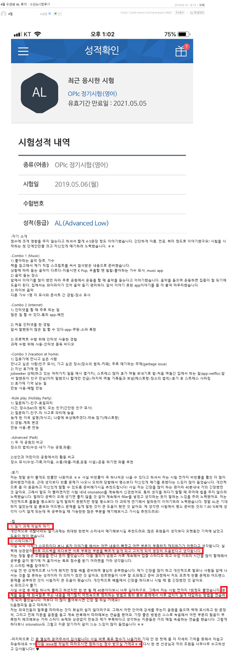 오픽 | (대구오픽 AL후기) JESSA 선생님께의 말씀대로 했더니 오픽AL !
