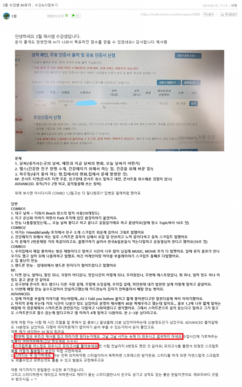 1. 첫번째 팁은 무조건 제사쌤 믿고 따라가면 된다는거에요. 그날 그날 시키는 숙제 다 외우시고 결석하지 마세요 수업시간에 가르쳐주는 팁들이 어마어마해여(그냥 믿으세요 ㅋㅋㅋ)