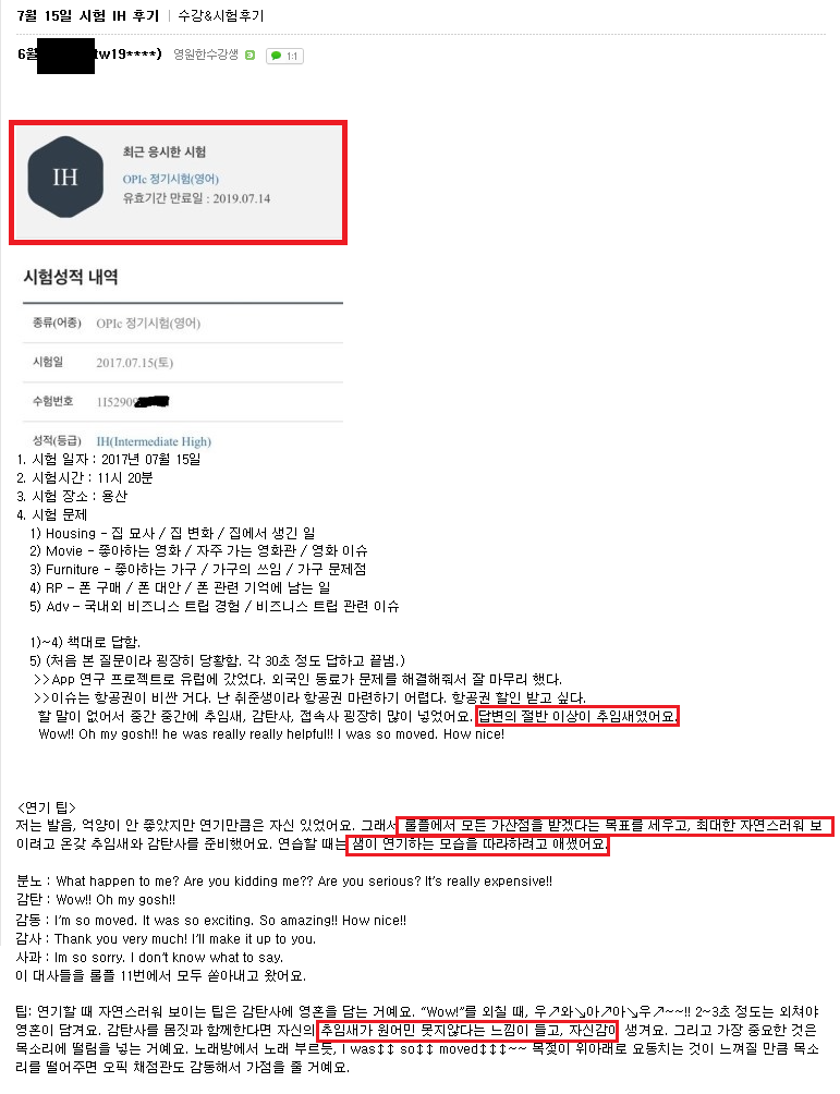 오픽 | (대구오픽 IH후기) 오픽 IH~! 고득점 방법 >_< 페이지 정보 작성자 MELPARK 작성일17-08-09 19:36 조회3,631회 댓글0건 이전글 다음글 목록 본문 (클릭 하시면 크게 보실 수 있습니다.) 수강생 후기 입니다.더 많은 후기는 우측 카페 링크 가입 후 보실 수 있습니다. 이전글 다음글 목록
