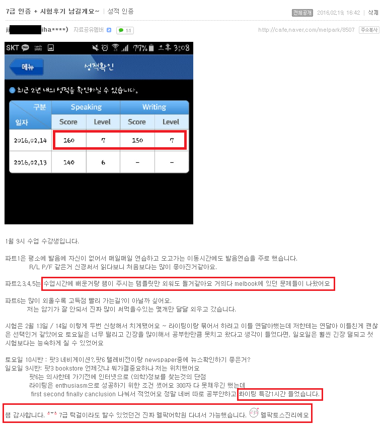 토스 | (대구토스 7급후기) 토익스피킹 & 토익롸이팅 모두 7급!! 멜팍토스는 진리♥ 페이지 정보 작성자 MELPARK 작성일16-02-23 09:17 조회4,172회 댓글0건 이전글 다음글 목록 본문 (클릭 하시면 크게 보실 수 있습니다.) 수강생 후기 입니다. 더 많은 후기는 우측 카페 링크 가입 후 보실 수 있습니다. 이전글 다음글 목록