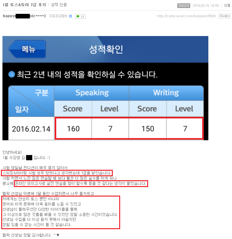 토스 | (대구토스 7급후기) 감동후기)단순히 토스 그 이상의 수업이었습니다. 페이지 정보 작성자 MELPARK 작성일16-02-23 09:22 조회4,146회 댓글0건 이전글 다음글 목록 본문 (클릭 하시면 크게 보실 수 있습니다.) 수강생 후기 입니다. 더 많은 후기는 우측 카페 링크 가입 후 보실 수 있습니다. 이전글 다음글 목록