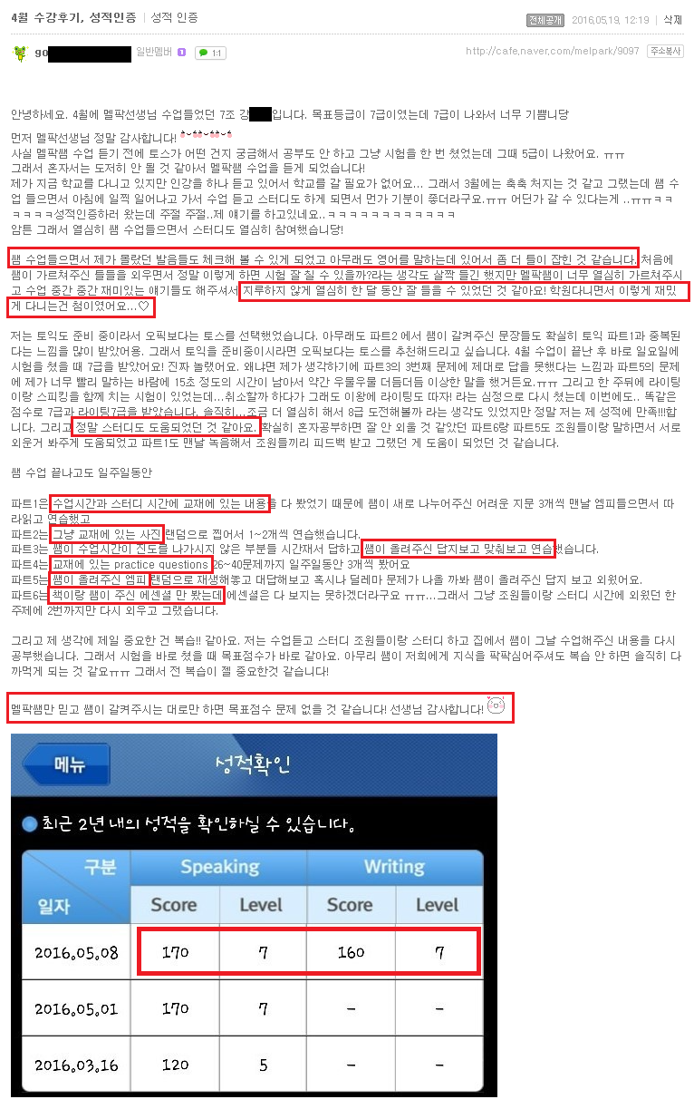 토스 | (대구토스 7급후기) 목표등급 7급을 받아서 너무 기뻐요~~ 페이지 정보 작성자 MELPARK 작성일16-05-25 10:09 조회4,261회 댓글0건 이전글 다음글 목록 본문 (클릭 하시면 크게 보실 수 있습니다.) 수강생 후기 입니다. 더 많은 후기는 우측 카페 링크 가입 후 보실 수 있습니다. 이전글 다음글 목록