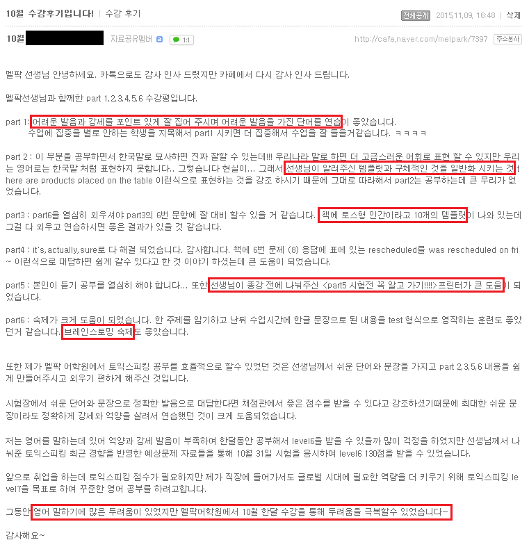 토스 | (대구토스 6급후기) 쉬운 단어와 문장으로 "한달완성" 페이지 정보 작성자 MELPARK 작성일15-11-10 10:20 조회4,700회 댓글0건 이전글 다음글 목록 본문 (클릭 하시면 크게 보실 수 있습니다.) 수강생 후기 입니다. 더 많은 후기는 우측 카페 링크 가입 후 보실 수 있습니다. 이전글 다음글 목록